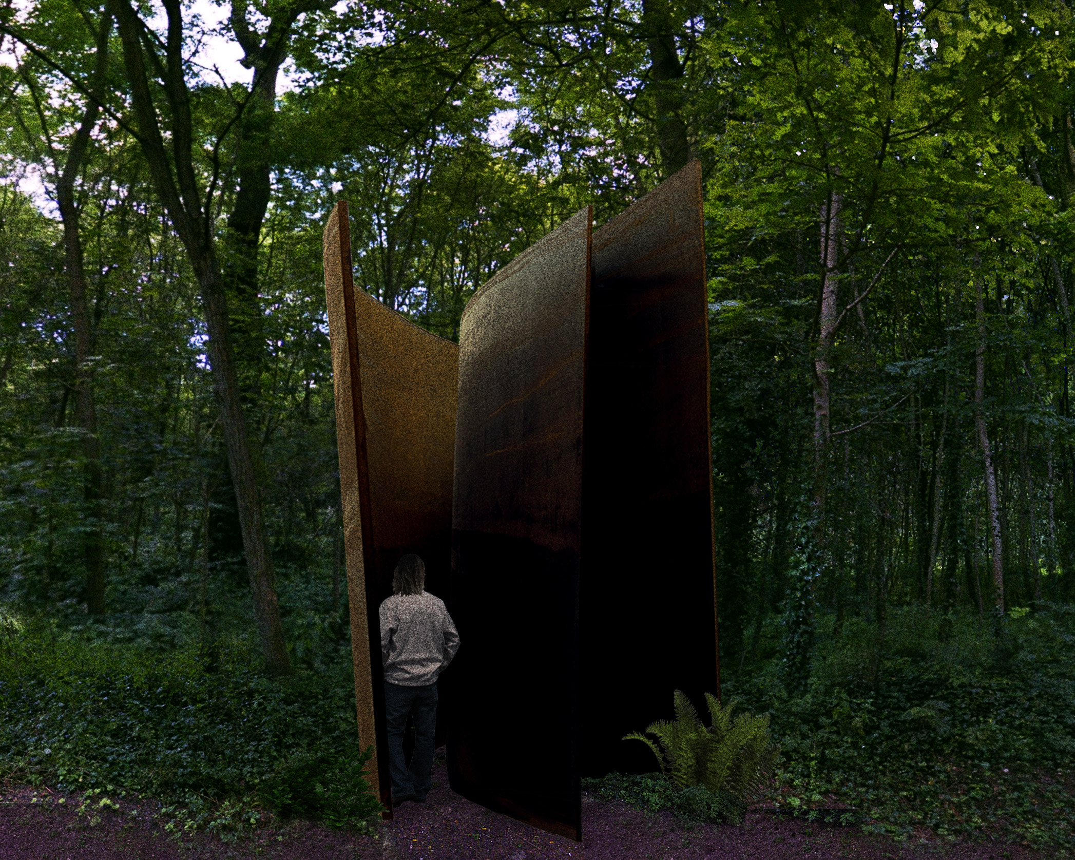 Interpretació de l’instal·lació escultòrica de Richard Serra emplaçant-la al parc central de Paris